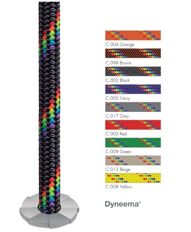 Core: Dyneema® SK-78 and Polyester HT. From 10mm additional braided Polyester Spun.