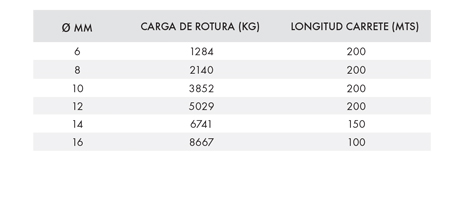 Construction: double braided / 4 to 6mm: 16-plaited 1:1 – 8 to 16mm: 32-plaited 1:1.